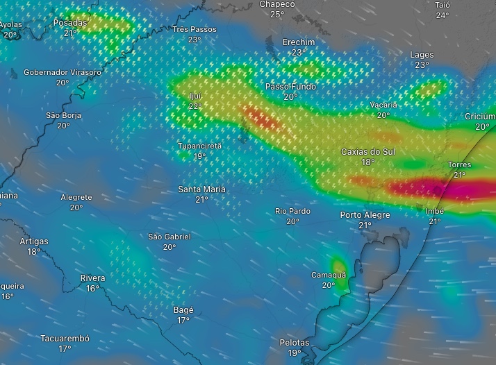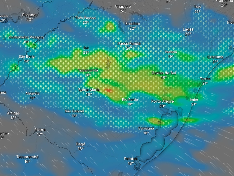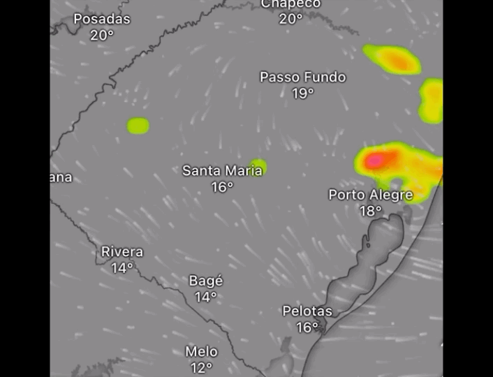 - Uma frente fria associada ao ciclone traz chuvas ainda mais intensas para o norte do estado e Santa Catarina.